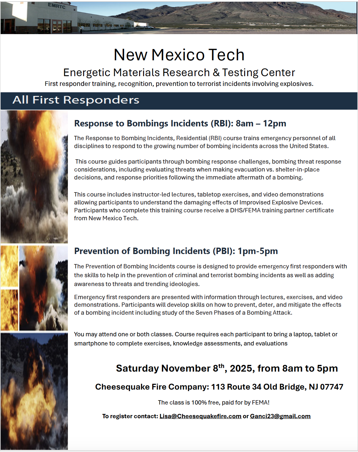Join Captain Ganci, Lt. Jusino and Instructor/ Fire Fighter Lent at The Cheesequake Fire House in Old Bridge, NJ, on November 8th, 2025, for two exclusive courses offered by New Mexico Tech.